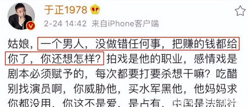 这立刻让我想起了那句老话,“我老爸是李刚”!现在的人真是气得不行,咱们国家讲法治,竟然还有人仗着家里背景胡作非为,真是让人心里堵得慌。难道这个国家还有人背景这么强,连警察都拿他没办法?于正一开始觉得自己做得对,但很快他又觉得有些不对劲。不久之后,他在微博上再次发言,严厉批评了赵弈钦的前女友。