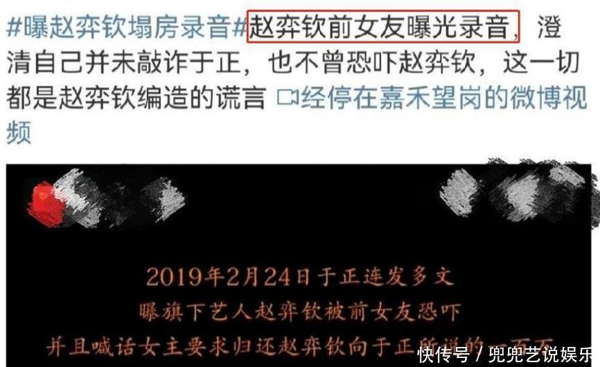 正当大家以为导演于正的严厉批评会让这个话题慢慢冷却下来时,赵弈钦的前女友突然又抛出了一个新的热点。赵弈钦的前女友没有多说,只是默默地在网上发布了一段长达四小时的录音,里面一片寂静。录音中,赵弈钦亲自对她坦白了娱乐圈那些不为人知的黑暗潜规则。赵弈钦曾经和女朋友坦白说,娱乐圈里的明星形象大多是假的,都是公司通过包装制造出来的,只是为了取悦粉丝。