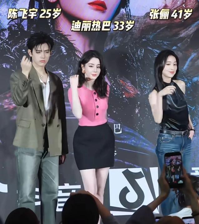 两位女演员的风格各有特色。热巴明艳动人,张俪则带着一种清冷的气质。她们一同出现在宣传活动中,画面和谐养眼。张俪的造型简洁大气,热巴的装扮则充满活力。两人跳舞的片段生动有趣,后方一位女演员的目光似乎专注在某个方向,没有过多留意男主角的存在。这种小细节为宣传增添了轻松的氛围。